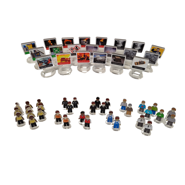 De set bevat 21 calimiteiten, 36 persoon speelstukken en een plattegrond van 100x100cm, afgedrukt op plexiglas.