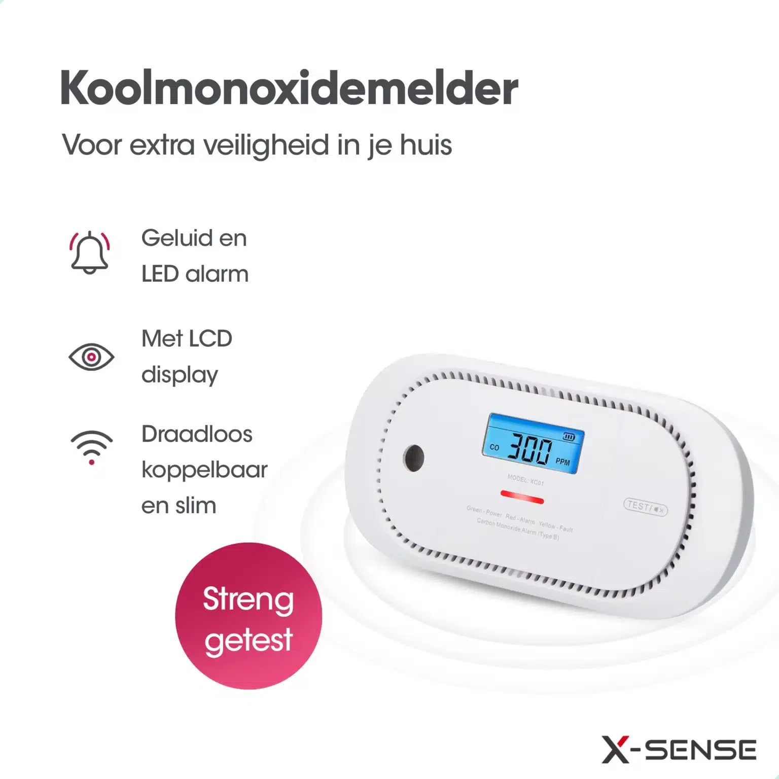 Bescherm jezelf tegen koolmonoxide met de X-Sense XC01-M CO-melder. Deze melder is zowel slim als gebruiksvriendelijk. Je hebt de optie om hem draadloos te verbinden met je WiFi-netwerk via het optionele X-Sense SBS50 Basisstation. Hierdoor ontvang je onmiddellijk meldingen op je telefoon in geval van een noodsituatie.