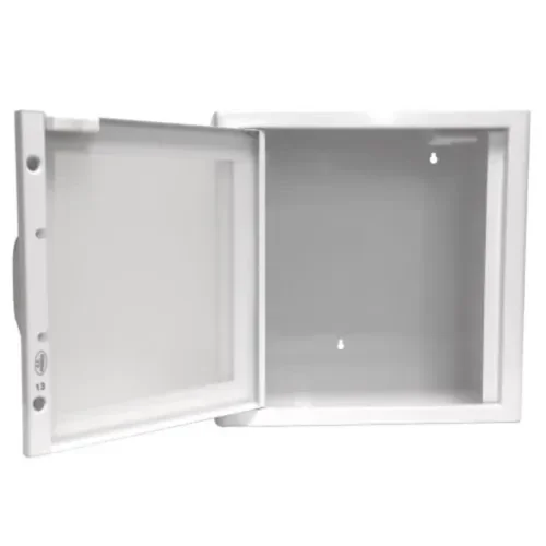 Universele AED wandkast wit en zonder logo. Geschikt voor alle defibrillatoren en ontworpen voor installatie binnenshuis. De kast wordt geleverd inclusief bevestigingsmateriaal en een magneetalarm met geluid tot wel 100 dB.